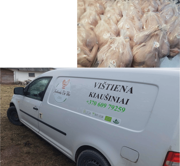 Ekologiški sertifikuoti produktai: vištiena, atvėsintos jos dalys, ekologiški kiaušiniai realizuojami: